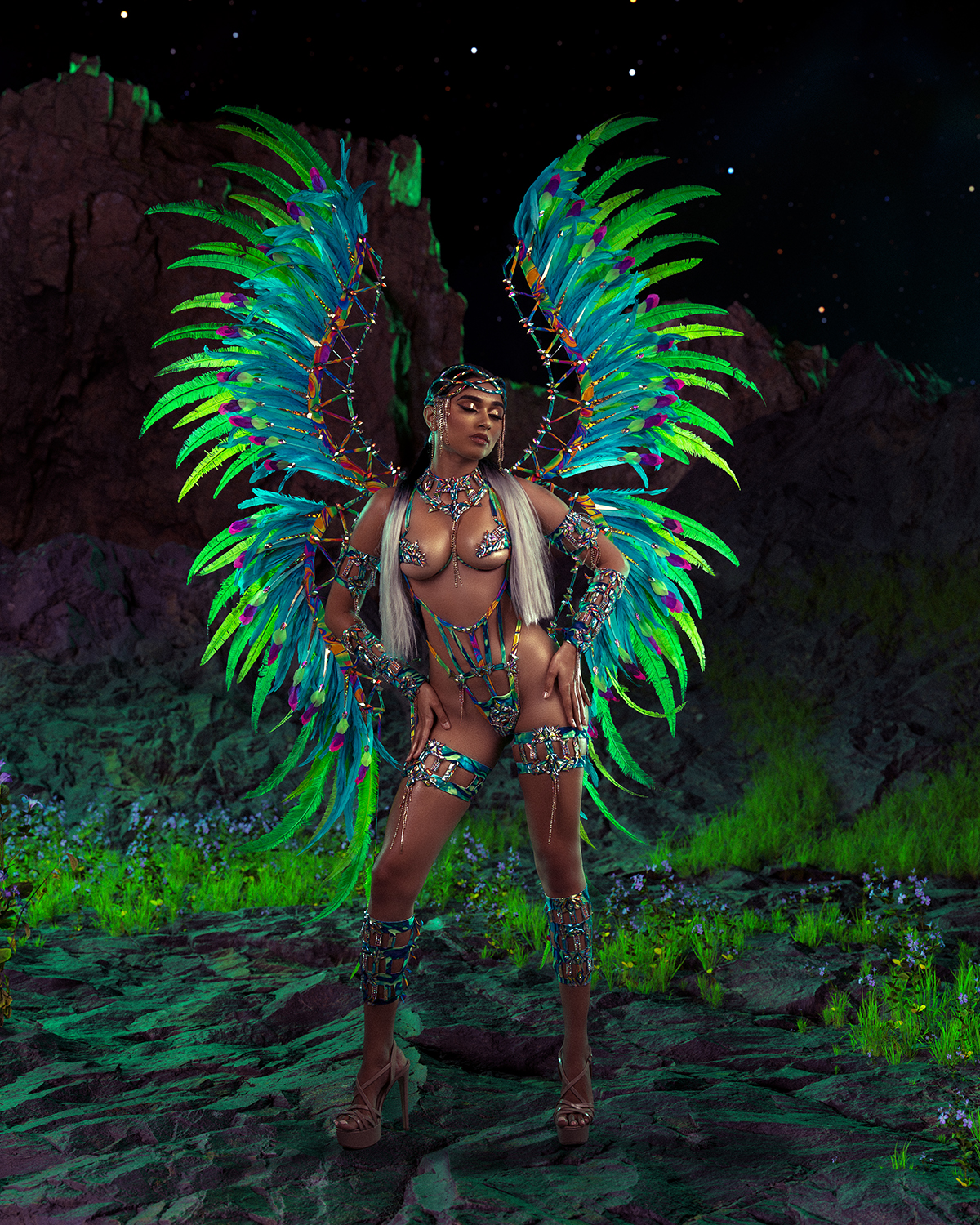 After obsessing over what band to play with (thank you to FollowSoca and other masqueraders those who warned me about Xodus…whoooo, child!) and what costume to choose (so difficult!), I settled on a midline monokini in the Mystic Peaks section with the GenXS.